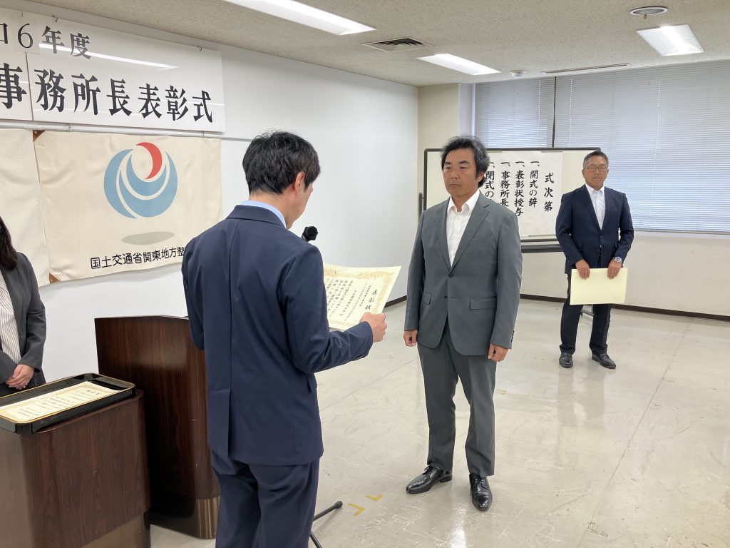 国道交通省 関東地方整備局 川崎国道事務所長より表彰状をいただきました。