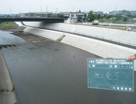 土木工事/インフラ設備 都市計画道路中山北山田線(青砥北八朔川和地区)街路整備及び市道北八朔北部第379号線道路整備工事 横浜市 概要 横浜市都筑区川和町の鶴見川で市道379号と交差する護岸を整備した工事です。 工期 H21.10.2~H23.7.29