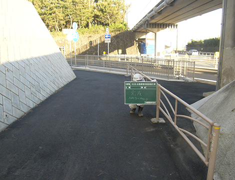 神奈川県中郡大磯町東小磯の西湘バイパスの大磯東上り線出口部の道路拡幅工事です。