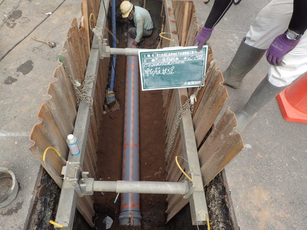 横浜市港北区篠原町で下水道の水洗化するための工事です。